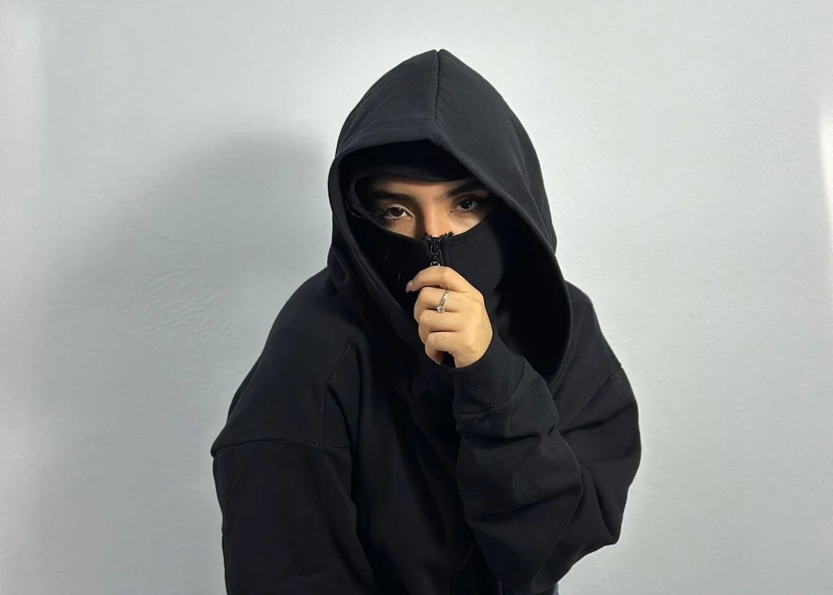 Diseño 2-en-1: Hoodie de corte urbano + balaclava con cremallera integrada.