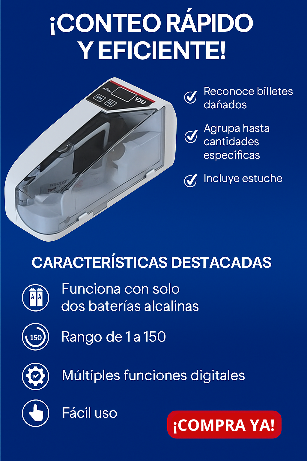 Lleva el control de tu efectivo a otro nivel: máquina contadora compacta, fiable y múltimoneda para que el conteo sea rápido, exacto y sin dolor de cabeza.