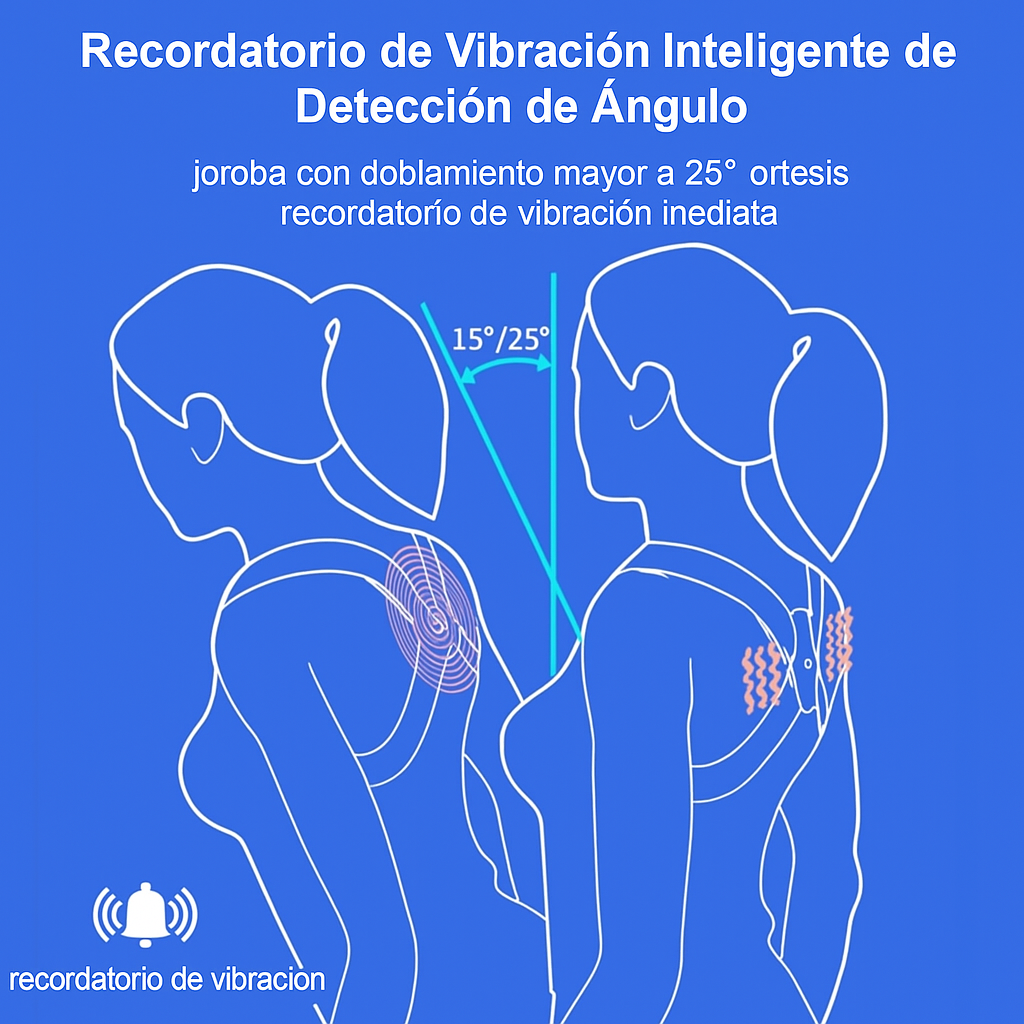 Sensor de detección de inclinación: vibración automática al detectar postura superior a un umbral predefinido.
