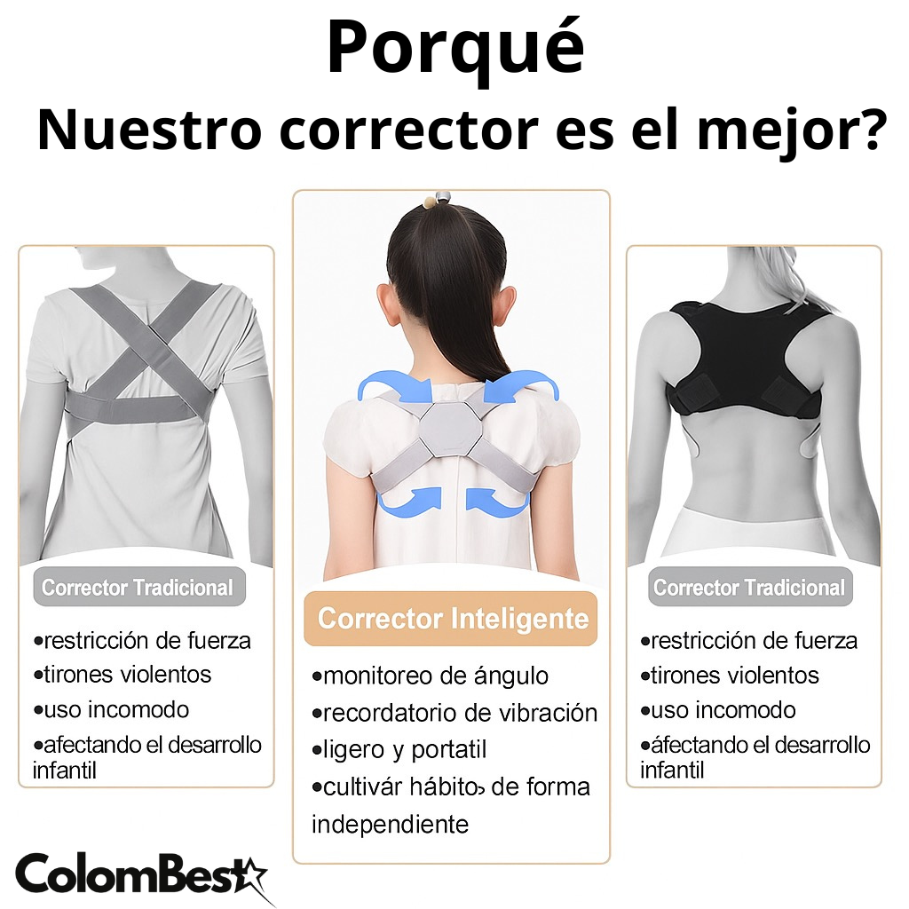 🔹 Ofrece 87% más alertas inteligentes de postura frente a modelos básicos que solo corrigen mediante correas rígidas.