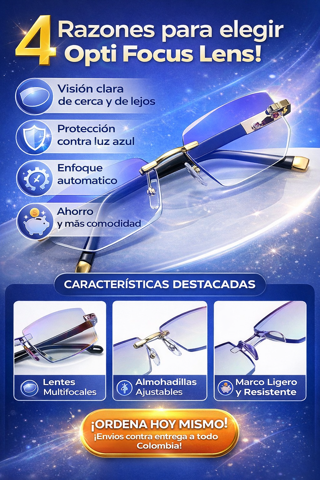 Olvídate de cambiar de gafas todo el día. Opti Focus Lens se adapta a tu visión diaria para leer, caminar, manejar y usar el celular con total comodidad.