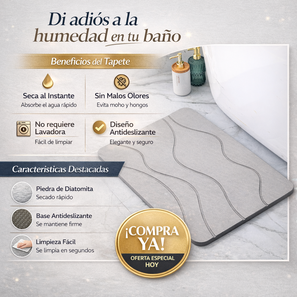 Sal del baño y pisa seco en segundos, sin tapetes mojados ni malos olores.